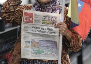 (260103) -- CARACAS, 3 enero, 2026 (Xinhua) -- Una mujer sostiene un periódico en las inmediaciones del Palacio de Miraflores, en Caracas, capital de Venezuela, el 3 de enero de 2026. El presidente estadounidense, Donald Trump, declaró la madrugada del sábado que Estados Unidos había llevado a cabo con éxito una operación a gran escala contra Venezuela, capturando al presidente Nicolás Maduro y su esposa, y sacándolos del país. (Xinhua/Str) (jg) (ra) (ce)