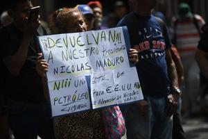 (260103) -- CARACAS, 3 enero, 2026 (Xinhua) -- Una mujer sostiene una pancarta en las inmediaciones del Palacio de Miraflores, en Caracas, capital de Venezuela, el 3 de enero de 2026. Varios gobiernos latinoamericanos, de diferentes signos políticos, condenaron el sábado la agresión lanzada por Estados Unidos contra Venezuela y la captura del presidente venezolano, Nicolás Maduro, y de su esposa, Cilia Flores. (Xinhua/Marcos Salgado) (ms) (oa) (ra) (ce)