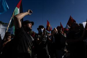 (260105) -- BUENOS AIRES, 5 enero, 2026 (Xinhua) -- Miembros de organizaciones sociales y políticas participan en una manifestación contra los ataques de Estados Unidos a Venezuela frente a la Embajada de Estados Unidos, en la ciudad de Buenos Aires, capital de Argentina, el 5 de enero de 2026. Organizaciones sociales, políticas y sindicales se movilizaron el lunes en Argentina para repudiar la agresión imperialista de Estados Unidos a Venezuela y en demanda de la liberación del presidente, Nicolás Maduro, y su esposa, Cilia Flores. (Xinhua/Martín Zabala) (mz) (ah) (oa) (vf)