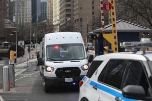 (260105) -- NUEVA YORK, 5 enero, 2026 (Xinhua) -- Un convoy que transporta al presidente venezolano, Nicolás Maduro, sale de un tribunal, en Nueva York, Estados Unidos, el 5 de enero de 2026. El presidente de Venezuela, Nicolás Maduro, se declaró el lunes no culpable de todos los cargos en su contra imputados por Estados Unidos durante su primera comparecencia ante un tribunal de Nueva York. (Xinhua/Zhang Fengguo) (ah) (oa) (vf)