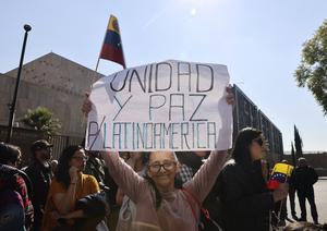 (260103) -- CIUDAD DE MEXICO, 3 enero, 2026 (Xinhua) -- Personas participan en una manifestación frente a la Embajada de Estados Unidos, en la Ciudad de México, capital de México, el 3 de enero de 2026. Varios gobiernos latinoamericanos, de diferentes signos políticos, condenaron el sábado la agresión lanzada por Estados Unidos contra Venezuela y la captura del presidente venezolano, Nicolás Maduro, y de su esposa, Cilia Flores. (Xinhua/Li Mengxin) (jg) (ra) (ce)
