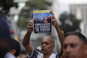 (260105) -- CARACAS, 5 enero, 2026 (Xinhua) -- Imagen del 4 de enero de 2026 de un hombre sosteniendo una pancarta durante una manifestación en apoyo al presidente venezolano, Nicolás Maduro, en las inmediaciones del Palacio de Miraflores, en Caracas, capital de Venezuela. (Xinhua/Str) (ms) (ah) (oa) (vf)