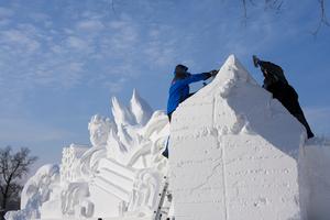 (260106) -- HARBIN, 6 enero, 2026 (Xinhua) -- Concursantes trabajan en una escultura de nieve en el recinto de la Exposición Internacional de Arte de Esculturas de Nieve de la Isla del Sol, en Harbin, en la provincia de Heilongjiang, en el noreste de China, el 6 de enero de 2026. El 28 concurso internacional de esculturas de nieve de Harbin comenzó aquí el martes, atrayendo 25 equipos de escultores de nieve de 13 países. (Xinhua/Wang Jianwei) (jg) (ra) (vf)