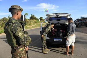 (260107) -- PACARAIMA, 7 enero, 2026 (Xinhua) -- Soldados del Ejército brasileño inspeccionan un vehículo en la frontera entre Brasil y Venezuela, en Pacaraima, Roraima, Brasil, el 7 de enero de 2026. (Xinhua/Lucio Tavora) (lt) (ah) (vf)