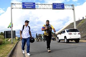 (260107) -- PACARAIMA, 7 enero, 2026 (Xinhua) -- Imagen del 6 de enero de 2026 de migrantes venezolanos llegando a Pacaraima, Roraima, Brasil, después de cruzar la frontera entre Brasil y Venezuela. (Xinhua/Lucio Tavora) (ah) (vf)
