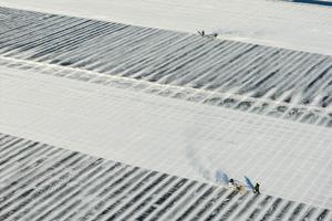 (260106) — HARBIN, 6 enero, 2026 (Xinhua) — Imagen tomada con un dron del 9 de diciembre de 2025 de trabajadores recogiendo hielo en la sección de Harbin del río Songhua, en la provincia de Heilongjiang, en el noreste de China. La “Ciudad de Hielo” de Harbin está experimentando una creciente afluencia de visitantes atraídos por los paisajes de hielo y nieve. El lunes se inauguró el 42 Festival de Hielo y Nieve en el Mundo de Hielo y Nieve de Harbin, el parque temático de hielo y nieve más grande del mundo y la atracción turística más emblemática de la ciudad. Durante las recientes vacaciones de Año Nuevo de tres días, Harbin recibió a más de 4,1 millones de viajeros. (Xinhua/Zhang Tao) (oa) (ah)