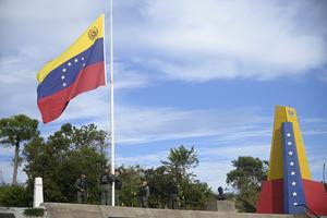 (260107) -- SANTA ELENA DE UAIREN, 7 enero, 2026 (Xinhua) -- Soldados de la Guardia Nacional Bolivariana de Venezuela izan a media asta la bandera nacional venezolana en homenaje a los fallecidos durante el ataque del Ejército estadounidense a Venezuela en la frontera entre Venezuela y Brasil, en Santa Elena de Uairén, Venezuela, el 7 de enero de 2026. (Xinhua/Lucio Tavora) (lt) (ah) (vf)
