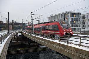 (260109) — BERLIN, 9 enero, 2026 (Xinhua) — Un tren llega a la Estación Central, en Berlín, capital de Alemania, el 9 de enero de 2026. La tormenta invernal Elli azotó gran parte de Alemania el viernes, causando la muerte de al menos tres personas y afectando gravemente al transporte, las escuelas y los servicios públicos, especialmente en el norte del país. (Xinhua/Zhang Haofu) (oa) (ra)