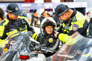 (260110) -- BEIJING, 10 enero, 2026 (Xinhua) -- Un niño prueba una motocicleta policial, en Tianjin, en el norte de China, el 10 de enero de 2026. Diversas actividades se llevaron a cabo a nivel nacional para conmemorar el sexto Día de la Policía Popular China. (Xinhua/Du Penghui) (jg) (ra) (ce)
