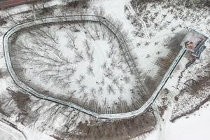 (260110) -- SHENYANG, 10 enero, 2026 (Xinhua) -- Vista aérea tomada con un dron el 9 de enero de 2026 de visitantes experimentando un tobogán de hielo en un complejo de aguas termales, en Shenyang, en la provincia de Liaoning, en el noreste de China. Aprovechando sus recursos naturales únicos, Shenyang ofrece experiencias de turismo invernal especiales al combinar actividades de hielo y nieve con aguas termales, atrayendo a visitantes de todo el país. (Xinhua/Pan Yulong) (jg) (ra) (ce)