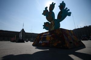 (260109) -- CIUDAD DE MEXICO, 9 enero, 2026 (Xinhua) -- Una escultura es vista durante la inauguración de la exposición "Nopalera en el Corazón", en el Zócalo de la Ciudad de México, capital de México, el 9 de enero de 2026. (Xinhua/Francisco Cañedo) (fc) (oa) (ra) (vf)