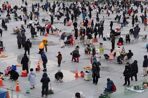 (260110) -- HWACHEON, 10 enero, 2026 (Xinhua) -- Turistas pescan en un río congelado durante el Festival de Hielo Sancheoneo de Hwacheon, en Hwacheon-gun, República de Corea, el 10 de enero de 2026. (Xinhua/Jun Hyosang) (oa) (ra) (ce)