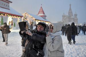 (260109) -- MOSCÚ, 9 enero, 2026 (Xinhua) -- Personas se toman una fotografía en la Plaza Roja cubierta de nieve, en Moscú, Rusia, el 9 de enero de 2026. (Xinhua/Alexander Zemlianichenko Jr) (oa) (ra)