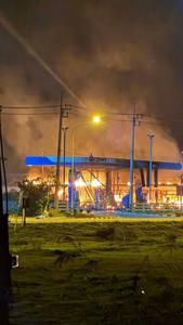 (260111) -- NARATHIWAT, 11 enero, 2026 (Xinhua) -- Imagen proveída por las Fuerzas Armadas Reales Tailandesas del 11 de enero de 2026 de una gasolinera en llamas, en Narathiwat, Tailandia. Varias gasolineras en las provincias fronterizas del sur de Tailandia fueron golpeadas por incendios provocados y explosiones durante la noche del sábado, dejando un oficial de policía herido, dijeron el domingo fuentes militares tailandesas. (Xinhua/Fuerzas Armadas Reales Tailandesas) (ah) (oa) (ce)