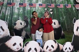 (260110) -- KUALA LUMPUR, 10 enero, 2026 (Xinhua) -- Una familia posa para fotografías con decoraciones con temática de pandas en el Zoológico Negara, en Selangor, Malasia, el 10 de enero de 2026. Los pandas gigantes de China "Chenxing" y "Xiaoyue", actualmente prestados a Malasia, se presentaron oficialmente al público aquí el sábado. (Xinhua/Cheng Yiheng) (oa) (ra) (ce)