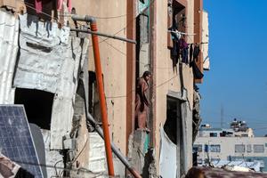 (260112) -- GAZA, 12 enero, 2026 (Xinhua) -- Imagen del 11 de enero de 2026 de un palestino desplazado visto en un refugio temporal cerca de un vertedero, en la Ciudad de Gaza. (Xinhua/Rizek Abdeljawad) (ah) (oa) (vf)