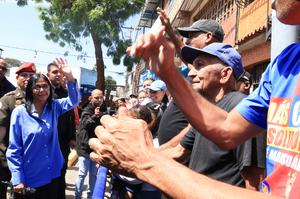 (260112) -- LA GUAIRA, 12 enero, 2026 (Xinhua) -- Imagen proveída por la Presidencia de Venezuela, de la presidenta encargada de Venezuela, Delcy Rodríguez (i-frente), saludando previo a inaugurar el curso escolar, en Catia la Mar, estado La Guaira, Venezuela, el 12 de enero de 2026. Rodríguez aseguró el lunes que en el país sudamericano "hay un gobierno que manda" y que avanza en las relaciones internacionales con respeto. (Xinhua/Presidencia de Venezuela) (ms) (oa) (ah) (vf)