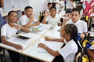 (260112) -- LA GUAIRA, 12 enero, 2026 (Xinhua) -- Imagen proveída por la Presidencia de Venezuela de estudiantes reaccionando durante la inauguración del curso escolar, en Catia la Mar, estado La Guaira, Venezuela, el 12 de enero de 2026. La presidenta encargada de Venezuela, Delcy Rodríguez, aseguró el lunes que en el país sudamericano "hay un gobierno que manda" y que avanza en las relaciones internacionales con respeto. (Xinhua/Presidencia de Venezuela) (ms) (oa) (ah) (vf)