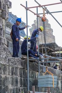 (260114) -- PHNOM PENH, 14 enero, 2026 (Xinhua) -- Imagen del 13 de enero de 2026 de trabajadores laborando en el sitio de restauración de la parte occidental del Templo Phnom Bakheng, en la provincia de Siem Reap, Camboya. El trabajo de restauración en la parte occidental del Templo Phnom Bakheng en el renombrado Parque Arqueológico Angkor de Camboya ha estado en marcha, dijo el miércoles un comunicado de prensa de la Autoridad Nacional APSARA (ANA). (Xinhua/ANA) (ah) (ra) (vf)