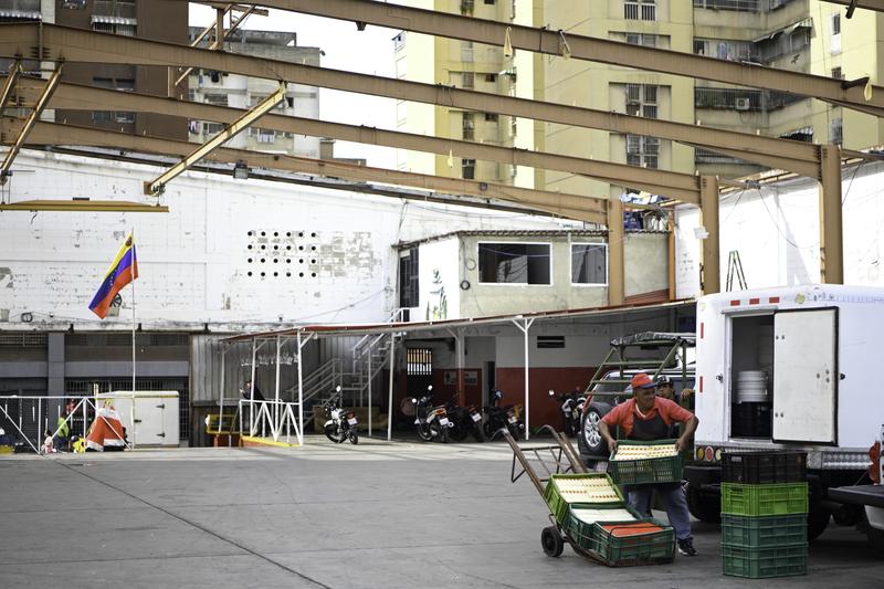 (260113) -- CARACAS, 13 enero, 2026 (Xinhua) -- Un hombre traslada queso en un mercado de quesos, en Caracas, Venezuela, el 13 de enero de 2026. (Xinhua/Ding Hongfa) (jg) (ra) (vf)
