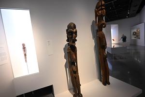(260114) -- SANTIAGO, 14 enero, 2026 (Xinhua) -- Una persona visita la exposición "Vivos y Presentes: arte de los pueblos Atacameño/Lickanantay, Mapuche y Rapanui" en el Museo Chileno de Arte Precolombino, en Santiago, capital de Chile, el 14 de enero de 2026. (Xinhua/Jorge Villegas) (jv) (ah) (ra) (vf)