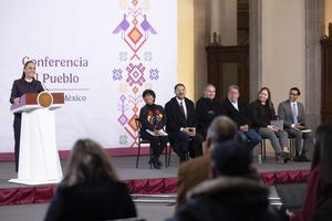 (260114) -- CIUDAD DE MEXICO, 14 enero, 2026 (Xinhua) -- Imagen proveída por la Presidencia de México de la presidenta mexicana, Claudia Sheinbaum (i), sonriendo durante su conferencia de prensa matutina, en Palacio Nacional, en la Ciudad de México, capital de México, el 14 de enero de 2026. Sheinbaum reiteró el miércoles la disposición del Gobierno mexicano a actuar como mediador en las diferencias entre Cuba y Estados Unidos, siempre y cuando ambas naciones estén de acuerdo. (Xinhua/Presidencia de México) (ah) (ra) (vf)