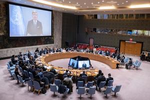 (260114) -- NACIONES UNIDAS, 14 enero, 2026 (Xinhua) -- El enviado especial de la ONU para Yemen, Hans Grundberg (en las pantallas), habla a través de un enlace de vídeo en una reunión del Consejo de Seguridad, en la sede de la ONU, en Nueva York, el 14 de enero de 2026. Grundberg enfatizó el miércoles la importancia de un proceso político integral en el país devastado por la guerra. (Xinhua/Manuel Elias/UN Photo) (jg) (da) (vf)