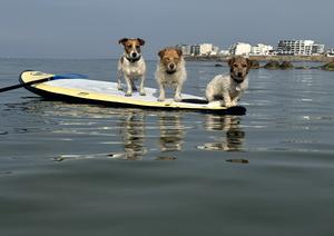 (260114) -- LIMA, 14 enero, 2026 (Xinhua) -- Imagen tomada con un teléfono móvil el 14 de enero de 2026 de perros descansando sobre una tabla de surf de remo en una playa de San Bartolo, en Lima, Perú. (Xinhua/Mariana Bazo) (mb) (jg) (da) (vf)