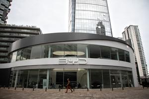 (260115) -- BUENOS AIRES, 15 enero, 2026 (Xinhua) -- Imagen del 9 de enero de 2026 de un hombre caminando frente a una concesionaria de la marca china BYD, en la ciudad de Buenos Aires, capital de Argentina. Argentina ha comenzado a dar pasos hacia la electromovilidad de la mano de vehículos eléctricos de origen chino, que empiezan a integrarse a la oferta de movilidad alternativa en el país, ganando presencia y despertando mayor interés entre los usuarios. (Xinhua/Martín Zabala) (mz) (da) (ra) (vf)