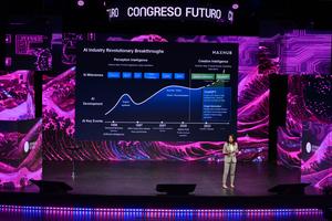 (260117) -- SANTIAGO, 17 enero, 2026 (Xinhua) -- Imagen del 16 de enero de 2026 de la gerente para Latinoamérica de Guangzhou Shiyuan Electronic Technology Company Limited, Liu Qun, realizando una presentación en el Congreso Futuro 2026, en el Centro Cultural CEINA, en Santiago, capital de Chile. El uso de la Inteligencia Artificial (IA) y diversas herramientas pueden ayudar a generar clases ejemplares en los profesores de los colegios, destacó Liu Qun durante su participación en el chileno Congreso Futuro 2026. (Xinhua/Jorge Villegas) (jv) (jg) (da)