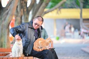 (260115) -- CHONGQING, 15 enero, 2026 (Xinhua) -- Imagen del 5 de enero de 2026 de un visitante interactuándo con gatos en un parque temático de gatos, en el distrito de Nan'an, en Chongqing, en el suroeste de China. Desde 2025, un terreno baldío a lo largo del río Yangtsé, en el distrito de Nan'an de Chongqing, se ha transformado en un parque temático de gatos. Con una superficie de 30.000 metros cuadrados, el parque sirve como refugio para gatos callejeros abandonados o heridos. (Xinhua/Guo Xu) (da) (vf)