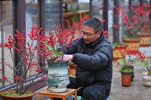 (260115) -- ZHOUNING, 15 enero, 2026 (Xinhua) -- Imagen del 14 de enero de 2026 de un gerente arreglando un bonsái de acebo, en el poblado de Puyuan del distrito de Zhouning, en la provincia de Fujian, en el sureste de China. Con la llegada del Festival de la Primavera, el mercado de flores de gran altitud y resistentes al frío ha experimentado un crecimiento constante. (Xinhua/Jiang Kehong) (jg) (ah) (vf)