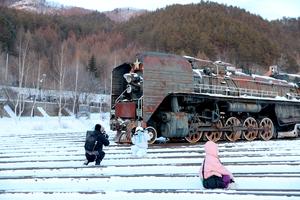 (260115) -- HAILIN, 15 enero, 2026 (Xinhua) -- Turistas toman fotografías en el museo del Ferrocarril Oriental Chino, en el poblado de Hengdaohezi de la ciudad de Hailin, en la provincia de Heilongjiang, en el noreste de China, el 15 de enero de 2025. Conocido como "un poblado tirado por trenes", Hengdaohezi se estableció originalmente a finales del siglo XIX cuando los rusos construyeron allí talleres de mantenimiento de trenes y otras instalaciones tras la construcción del Ferrocarril Oriental Chino. Gracias a sus edificios históricos bien conservados, este exótico poblado se ha convertido en un popular destino turístico. (Xinhua/Yang Zhe) (da) (ra) (vf)