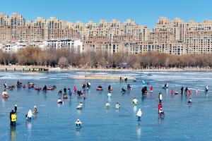 (260115) -- BEIJING, 15 enero, 2026 (Xinhua) -- Imagen tomada con un dron el 11 de enero de 2026 de personas divirtiéndose en un lago congelado en el parque nacional de humedales del lago Baohu, en Yinchuan, en la región autónoma de la etnia hui de Ningxia, en el noroeste de China. (Xinhua/Yuan Hongyan) (jg) (ah) (vf)