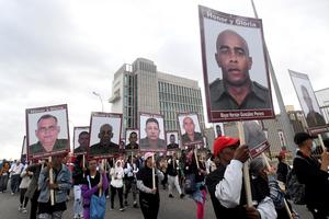 (260116) – LA HABANA, 16 enero, 2026 (Xinhua) -- Ciudadanos muestran fotografías de los militares cubanos fallecidos en el ataque estadounidense contra Venezuela mientras participan en una marcha frente a la Embajada de Estados Unidos, en La Habana, capital de Cuba, el 16 de enero de 2026. Medio millón de cubanos marcharon el viernes frente a la Tribuna Antiimperialista y muy cerca de la embajada estadounidense en La Habana, la capital de la isla, como parte de un homenaje a los 32 militares fallecidos en el ataque de Estados Unidos contra Venezuela el pasado 3 de enero. (Xinhua/Joaquín Hernández) (jh) (oa) (ra) (vf)
