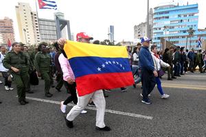 (260116) - LA HABANA, 16 enero, 2026 (Xinhua) -- Un ciudadano porta una bandera venezolana mientras participa en una marcha frente a la Embajada de Estados Unidos, en La Habana, capital de Cuba, el 16 de enero de 2026. Medio millón de cubanos marcharon el viernes frente a la Tribuna Antiimperialista y muy cerca de la embajada estadounidense en La Habana, la capital de la isla, como parte de un homenaje a los 32 militares fallecidos en el ataque de Estados Unidos contra Venezuela el pasado 3 de enero. (Xinhua/Joaquín Hernández) (jh) (oa) (ra) (vf)