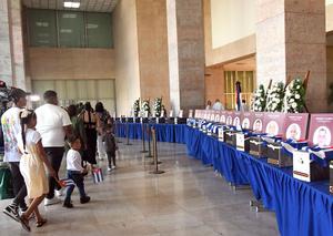 (260115) -- LA HABANA, 15 enero, 2026 (Xinhua) -- Personas asisten una ceremonia en tributo a los militares cubanos caídos durante el ataque de Estados Unidos contra Venezuela, en la sede del Ministerio de las Fuerzas Armadas Revolucionarias, en La Habana, capital de Cuba, el 15 de enero de 2026. Bajo una pertinaz lluvia, miles de habaneros rindieron tributo el jueves a los 32 militares cubanos caídos durante el ataque de Estados Unidos contra Venezuela, cuyos restos arribaron a la isla al amanecer del jueves. (Xinhua/Joaquín Hernández) (jh) (jg) (ah) (vf)