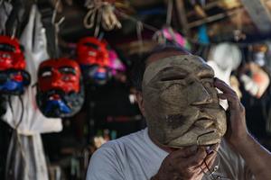 (260115) -- SAN SALVADOR, 15 enero, 2026 (Xinhua) -- Imagen del 14 de enero de 2026 del artesano Celio López elaborando una máscara típica en su taller de máscaras utilizadas en danzas tradicionales, en el departamento de San Salvador, El Salvador. (Xinhua/Alexander Peña) (ap) (da) (ra) (vf)