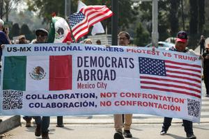 (260117) -- CIUDAD DE MEXICO, 17 enero, 2026 (Xinhua) -- Personas sostienen una pancarta durante una protesta contra las acciones militares de Estados Unidos en otros países y dentro del territorio estadounidense, en la Ciudad de México, capital de México, el 17 de enero de 2026. (Xinhua/Francisco Cañedo) (fc) (jg) (da)