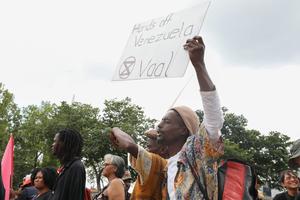 (260117) -- JOHANNESBURGO, 17 enero, 2026 (Xinhua) -- Imagen del 16 de enero de 2026 de personas asistiendo a una protesta contra las acciones de Estados Unidos en Venezuela frente al consulado de Estados Unidos, en Johannesburgo, Sudáfrica. Más de 100 manifestantes se congregaron el viernes afuera del Consulado de Estados Unidos en Johannesburgo, denunciando las acciones militares unilaterales de Estados Unidos contra Venezuela y expresando su solidaridad con la nación latinoamericana. (Xinhua/Chen Wei) (jg) (rtg) (da)