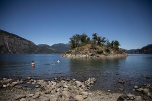 (260118) -- PROVINCIA DE NEUQUEN, 18 enero, 2026 (Xinhua) -- Imagen del 16 de enero de 2026 de personas nadando en la playa "La Islita" del Lago Lolog, a 12 kilómetros de la ciudad de San Martín de los Andes, Argentina. (Xinhua/Martín Zabala) (mz) (oa) (da)