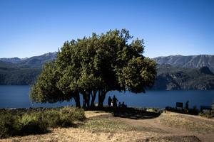 (260118) -- PROVINCIA DE NEUQUEN, 18 enero, 2026 (Xinhua) -- Imagen del 13 de enero de 2026 de personas observando desde un mirador el Lago Lácar en la "Ruta de los Siete Lagos", en la ciudad de San Martín de los Andes, en la provincia de Neuquén, Argentina. (Xinhua/Martín Zabala) (mz) (oa) (da)