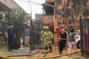 (260119) -- BIOBIO, 19 enero, 2026 (Xinhua) -- Imagen cedida por la Agencia de Noticias de Chile AGENCIA UNO de bomberos saliendo de un edificio residencial destruido después de los incendios, en el Cerro La Huasca, en Lirquén, en la comuna de Penco, en la región del BioBío, Chile, el 19 de enero de 2026. (Xinhua/Rodrigo Fuica/AGENCIAUNO) (rtg) (ah)