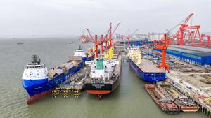 (260119) -- BEIJING, 19 enero, 2026 (Xinhua) -- Imagen tomada con un dron el 11 de enero de 2026 de embarcaciones en construcción en una empresa de construcción naval en Taizhou, en la provincia de Jiangsu, en el este de China. El producto interno bruto (PIB) de China creció un 5 por ciento interanual en 2025, cumpliendo con el objetivo anual de alrededor del 5 por ciento, según datos oficiales publicados el lunes. El PIB de China alcanzó un récord de 140,1879 billones de yuanes (unos 20,01 billones de dólares) el año pasado, resaltó el Buró Nacional de Estadísticas. (Xinhua/Zhou Shegen) (rtg) (ah) (vf)