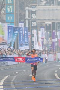 (260118) -- CHONGQING, 18 enero, 2026 (Xinhua) -- Adisu Tesfahun Tafere, de Etiopía, cruza la línea de meta y se proclama campeón masculino durante el Maratón de Chongqing 2026, en el distrito de Nan'an de la municipalidad de Chongqing, en el suroeste de China, el 18 de enero de 2026. Unos 25.000 corredores participaron en este evento deportivo celebrado aquí el domingo. (Xinhua/Huang Wei) (oa) (ah)