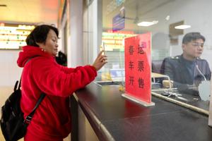 (260119) -- BEIJING, 19 enero, 2026 (Xinhua) -- Una pasajera compra boletos de tren en una estación de ferrocarriles, en el distrito de Changxing, en la provincia de Zhejiang, en el este de China, el 19 de enero de 2026. Los boletos de tren para el primer día de la temporada alta de desplazamientos con motivo de la Fiesta de la Primavera de 2026 salieron a la venta el lunes, informó el operador ferroviario de China. El período de mayor afluencia de viajes de este año, conocido como chunyun, se extenderá del 2 de febrero al 13 de marzo, según el Grupo Estatal de Ferrocarriles de China. (Xinhua/Tan Yunfeng) (rtg) (ah) (vf)