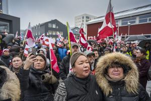 (260118) -- NUUK, 18 enero, 2026 (Xinhua) -- Imagen del 17 de enero de 2026 de personas asistiendo a una manifestación en contra de las acciones y comentarios de Estados Unidos que sugieren control sobre Groenlandia, en Nuuk, capital de Groenlandia, un territorio autónomo de Dinamarca. Al mediodía del sábado, miles de personas se habían reunido en el centro de Copenhague, abrigadas contra el frío de enero, mientras las banderas danesas y groenlandesas ondeaban en el aire y los cánticos de "Groenlandia no está en venta" y "Manos fuera de Groenlandia" resonaban entre la multitud en protesta contra las acciones y comentarios de Estados Unidos que sugerían control sobre la isla. (Xinhua/Anders Kongshaug) (rtg) (da) (ah)
