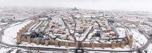 (260118) -- AVILA, 18 enero, 2026 (Xinhua) -- Vista aérea tomada con un dron el 17 de enero de 2026 de un paisaje nevado de Avila, España. Avila es reconocida como un Sitio Patrimonio de la Humanidad de la UNESCO por sus murallas medievales, construidas en el siglo XI y que se extienden a lo largo de unos 2,5 kilómetros. (Xinhua/Cheng Min) (oa) (ah)