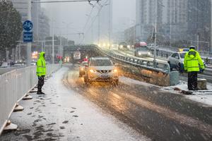 (260120) -- BEIJING, 20 enero, 2026 (Xinhua) -- Oficiales de policía dirigen el tráfico cerca del puente Jianghan, en Wuhan, en la provincia de Hubei, en el centro de China, el 20 de enero de 2026. En relación con las nevadas generalizadas y los descensos de temperatura en varias regiones de China, se han tomado medidas para responder activamente a estas condiciones meteorológicas. (Xinhua/Xiao Yijiu) (oa) (ah) (vf)
