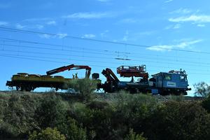 (260120) -- CORDOBA, 20 enero, 2026 (Xinhua) -- Maquinaria pesada se dirige al sitio de la colisión de tren de alta velocidad, cerca de Adamuz, en Córdoba, España, el 20 de enero de 2026. Dos trenes de alta velocidad colisionaron el 18 de enero en la provincia de Córdoba, en el sur de España, causando numerosas víctimas. (Xinhua/Cheng Min) (jg) (ra) (vf)